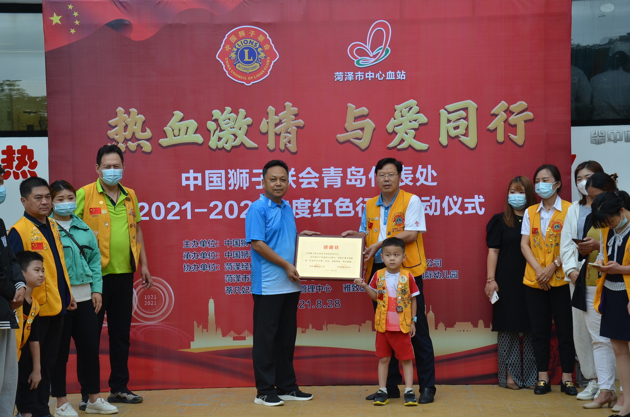 涓涓细流汇成大海,滴滴热血诠释爱心。8月28日上午,中国狮子联会青岛代表处菏泽分区积极响应中狮联青岛代表处在全省联动开展“温馨工程 红色行动”无偿献血活动的号召,联合菏泽市中心血站积极举办“热血激情、与爱同行”无偿献血公益活动,50多位狮友及爱心市民积极参与献血,以涓涓热血彰显无私奉献、大爱无疆的精神。菏泽市中心血站站长巨昆代表市中心血站向菏泽分区负责人颁发了感谢状。