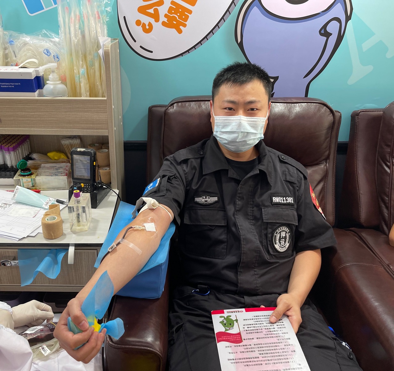 押运队员付强正在献血(肖莉娇摄)