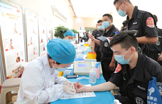 9月9日上午,一场大规模的团体献血活动在武汉市融威押运保安服务有限公司进行。武汉融威押运公司总部和沌口、黄陂、江夏、新洲分公司五大会场同时启动捐献热血活动,并在现场大屏幕上进行同步直播。来自武汉融威押运公司的近400名员工身着统一的制服,排着整齐的队伍分时段献血。活动当天,共有197人成功献血,献血总量达5.54万毫升。