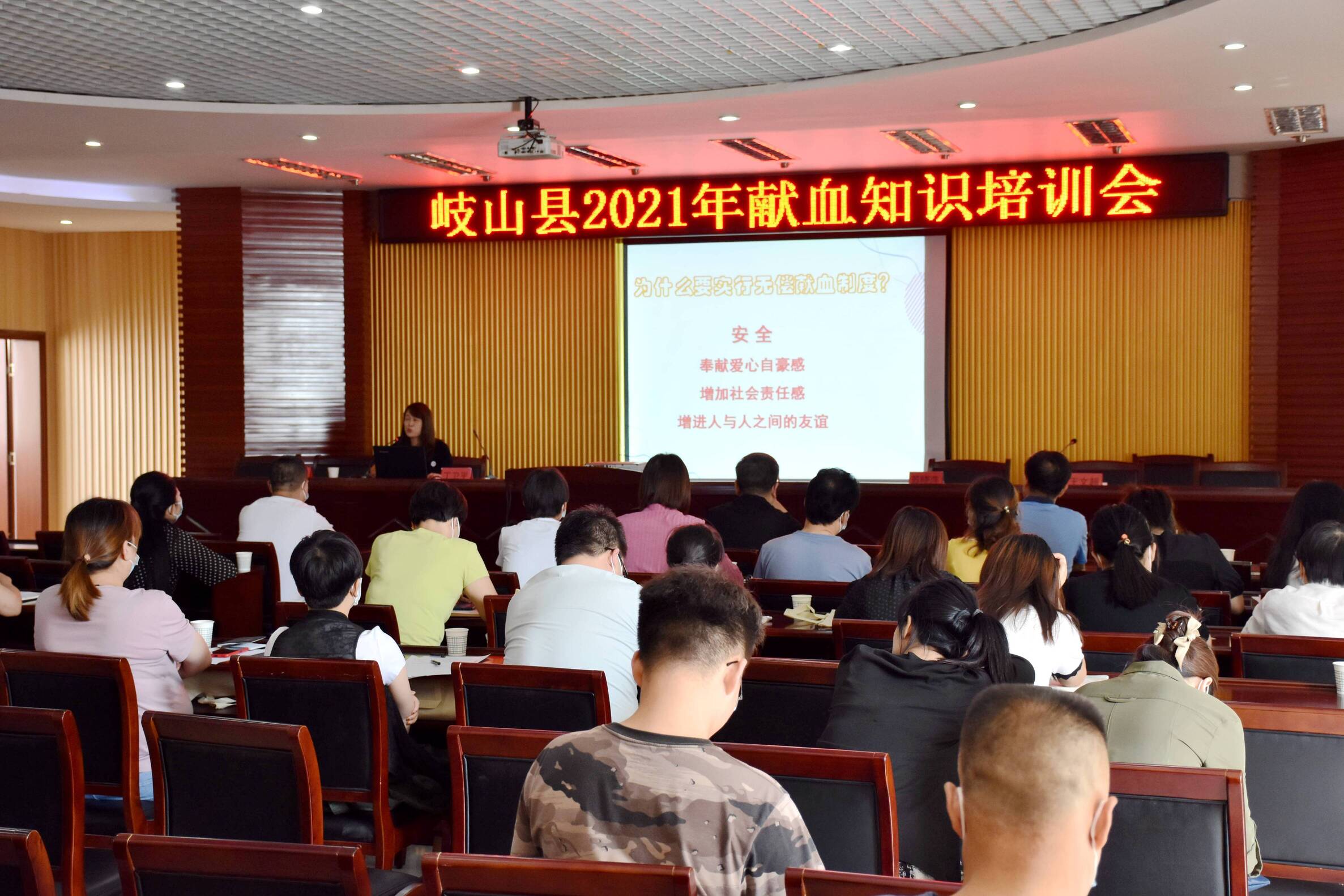 为进一步做好无偿献血工作,提高各镇、各部门对献血政策法规和相关知识的理解,9月9日下午,岐山县献血办联合宝鸡市中心血站举办了2021年无偿献血知识专题培训,全县各镇、各部门负责献血工作同志共计50余人参加培训。