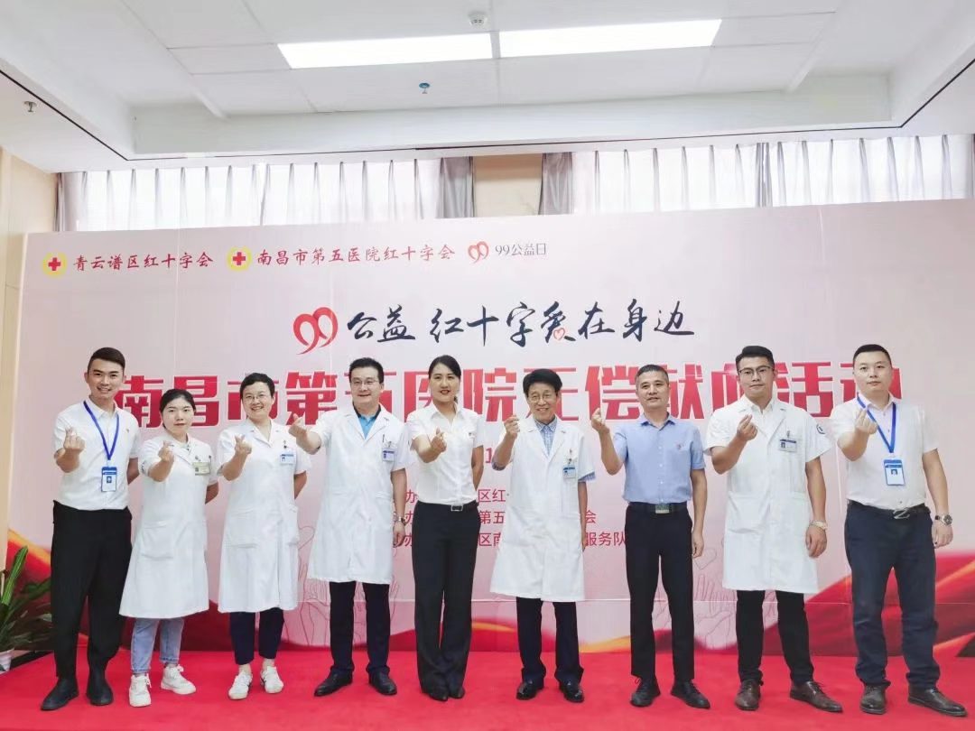 无偿献血作为一项崇高的社会公益性事业,是传递人间真情的红色纽带。9月9日全民公益活动日,在南昌市青云谱区红十字会的大力支持下,南昌市第五医院红十字会积极组织开展主题为“九九公益·红十字爱在身边”无偿献血活动,用汩汩热血化作浓浓爱心,助力无偿献血公益事业。南昌市青云谱区红十字会副会长吴燕舞,青云谱区红十字会副监事长肖红军及南昌市第五医院红十字会会长、常务副院长吴治锋等领导出席活动、讲话,并带头献血。