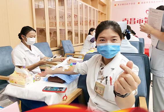 南昌市第五医院的医务工作者们纷纷响应,献血队伍里,有刚交完班还没来得及休息的医护人员;有在忙碌的工作中抽空赶来的职工;有手持多本献血证的“常客”;也有第一次献血还有些许紧张的“新人”。