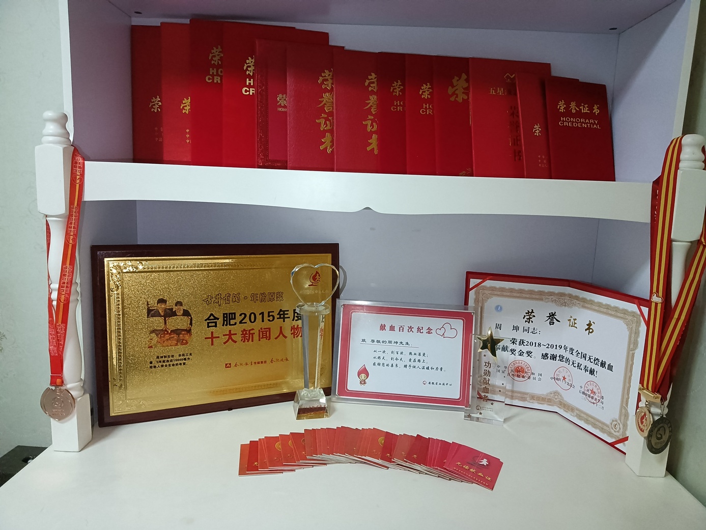 虽然岗位平凡,但他却怀有一颗不平凡的心。他不仅仅是一名厨师,还有两个特殊的身份:献血者和志愿者。2000年首次参加无偿献血,至今共献血196次,其中全血1600毫升,单采血小板195个治疗量(可根据自身血小板计数自愿选择捐献一个治疗量或者两个治疗量),先后荣获2008-2009年度全国无偿献血奉献金奖,2010-2011年度全国无偿献血奉献金奖,2012-2013年度全国无偿献血奉献银奖,2014-2015年度全国无偿献血奉献奖金奖,2016-2017年度全国无偿献血奉献奖金奖,2018-2019年度全国无偿献血奉献奖金奖。