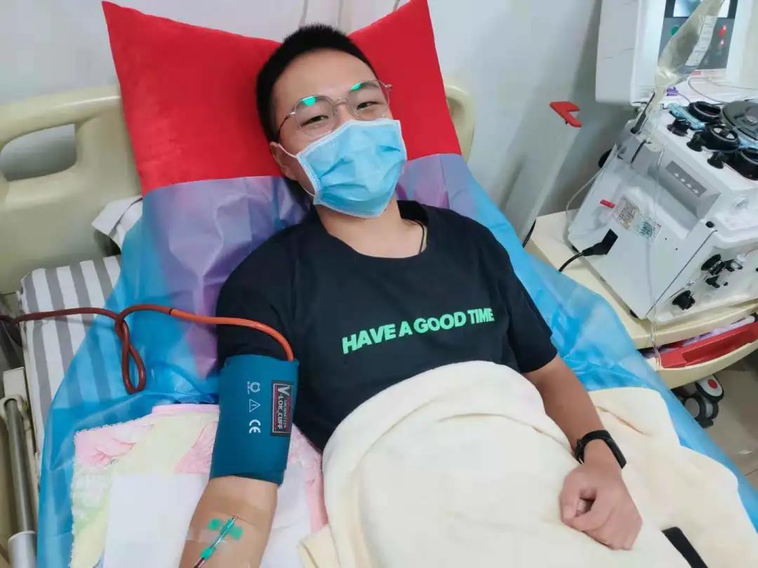 “家里的亲人开始的时候会有点担心,但是献过几次以后他们渐渐放心了。”廖鹏涛,一个笑起来能让人想到冬日里阳光的男生,他说,“每次我们五个人一起出发,一起回去,家人也会比较放心。而我们,渐渐地就把无偿献血当成大学时光一项非常有意义的活动。我想即使毕业以后,我还是会很怀念这段共同献血的日子。”
