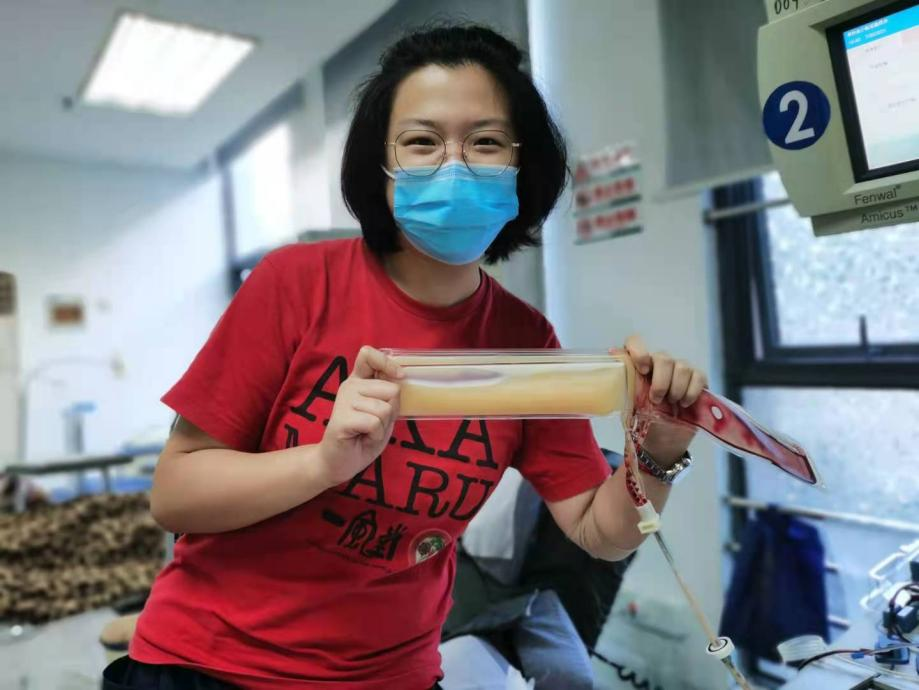 这位漂亮的小姑娘叫梅笛,是中国药科大学的一名学生,今天是她第一次参加无偿献血。捐献结束,她激动地和自己捐献的血小板合影留恋。她说:“我昨天在社区做志愿者,晚上看到微博上说南京血液紧张,我就想着能做点啥。虽然有些害怕,但能帮助到别人我很开心。”这正是中国当代大学生的担当。