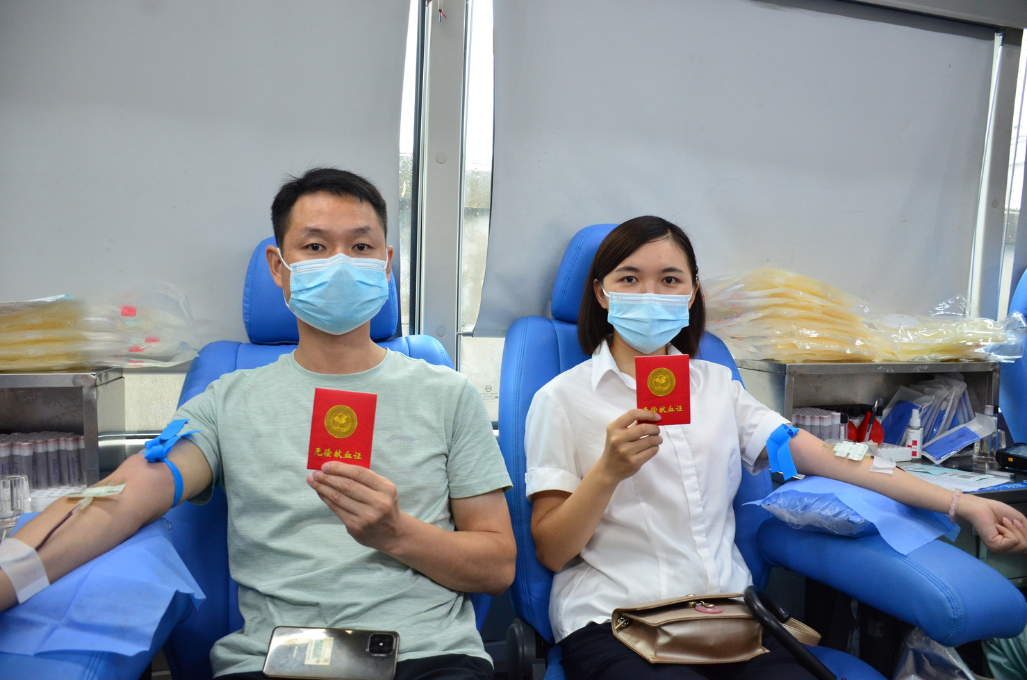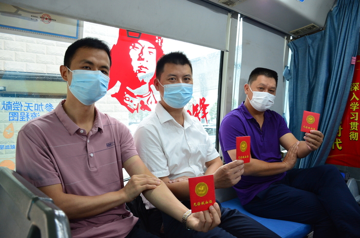 在活动现场,戴着口罩的众人自觉排起长队,依次登记、初筛后进入停在一旁的流动采血车上献血。他们中间,有多次参与无偿献血的老员工,也有初次献血的新人。
