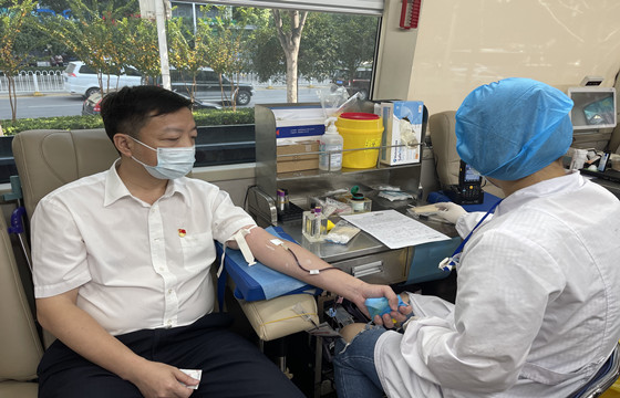 招商积余湖北公司总经理方瞩凯正在献血(肖莉娇摄)