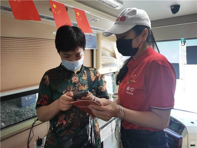 身着红马甲在车上车下忙个不停的王静是当天最后一位献血者,这一次她又成功捐献了300毫升全血。这是她第一次组织团队献血,本次活动最终成功献血35人,累计献血总量达一万余毫升。热血有限,爱心无价,每一位热血者都为抗疫贡献了“一臂之力”。