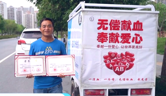 今年31岁的朱聪磊是一位农家子弟。前几年,他跑过保险、在工地打过工,他从2011年开始献血,至今献血43500毫升,并坚持无偿献血公益宣传近10年,带动身边的亲戚、朋友、同事加入无偿献血队伍。朱聪磊是中通快递的快递小哥,除了坚持献血救人,还利用多种途径宣传无偿献血,传播公益理念,带动更多人关注献血,参与献血。