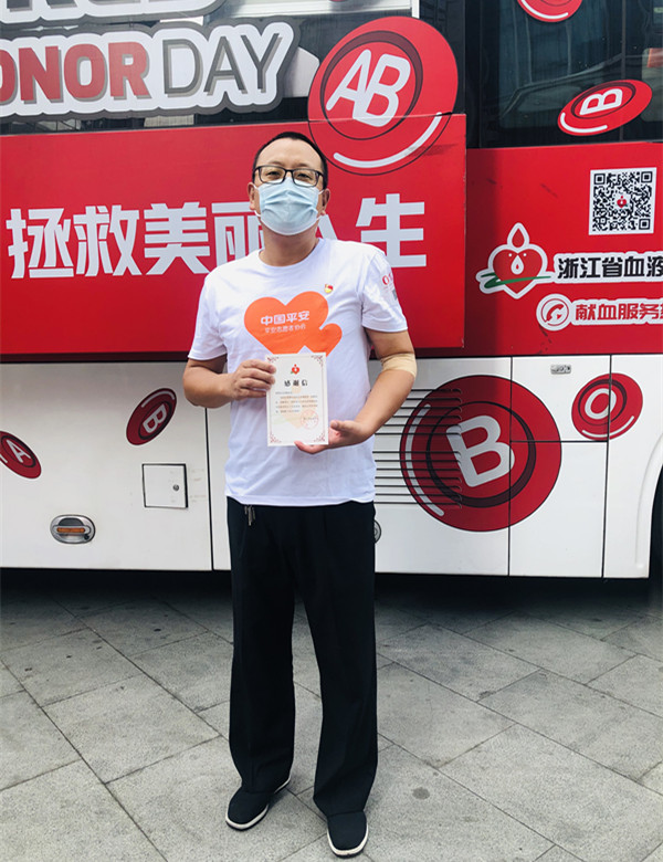 活动现场,来自中国平安志愿者协会的志愿者周剑与我们分享了他的爱心献血故事及所感所想。周剑是一名资深的无偿献血者,也是一名中共党员。一次次热血奉献,一次次爱心传递,他用红色行动延续热血大爱,护佑他人健康。目前,周剑累计献血总量超过6000毫升,并获得了浙江省的“三免”荣誉证,享受了“三免”的优惠政策。他感慨道:“每天刷《浙江省无偿献血荣誉证》免费乘坐地铁,不仅自豪,内心也更坚定了把这份爱传承下去的信念,正如平安爱心献血周的主题‘让爱延续’。”在他的影响和带动下,越来越多的同事也积极、主动地参与平安爱心献血周活动。