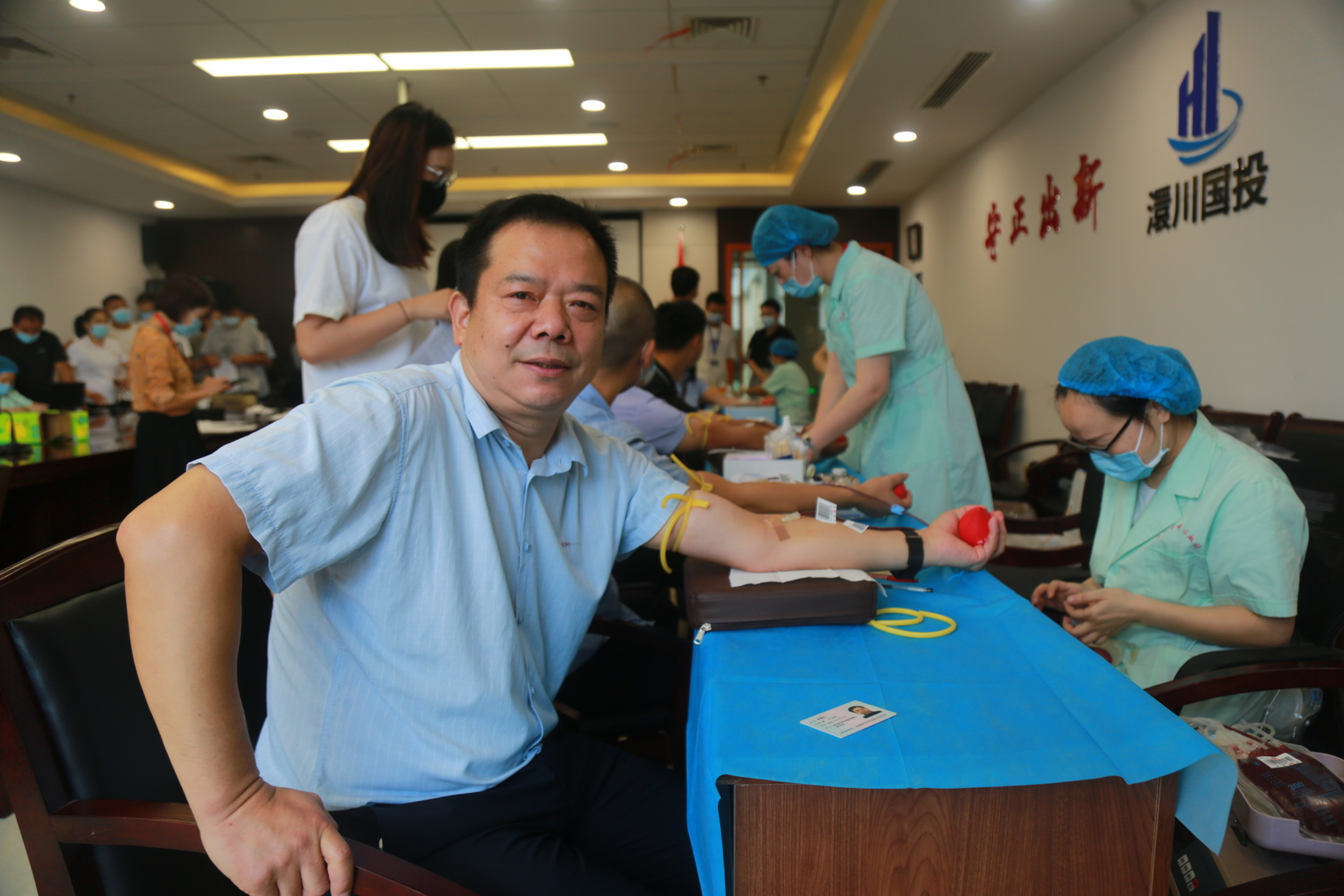 上午8点半,在位于孝感市民之家四楼的会议室,澴川国投公司及旗下多家子公司爱心人士排队献血,其中许多人是我市的固定献血者。