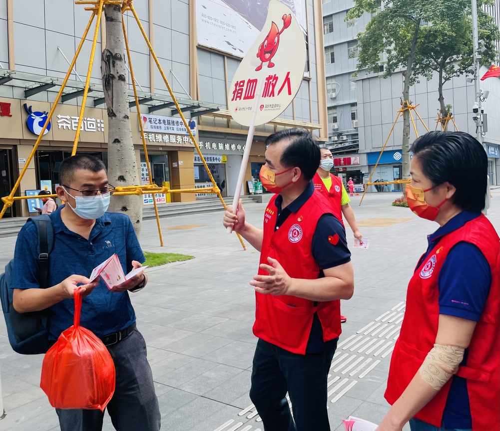 我们是党员,就应该带头。即使在疫情最严重的那段时间,为保障无偿献血志愿者们的安全,深圳市血液中心取消了市民志愿服务工作,在党总支的决策下,党员们毅然决然的担任起了街头招募宣传工作。因为我们清楚的知道,保障临床用血安全与充足,我们一刻都不能怠慢。