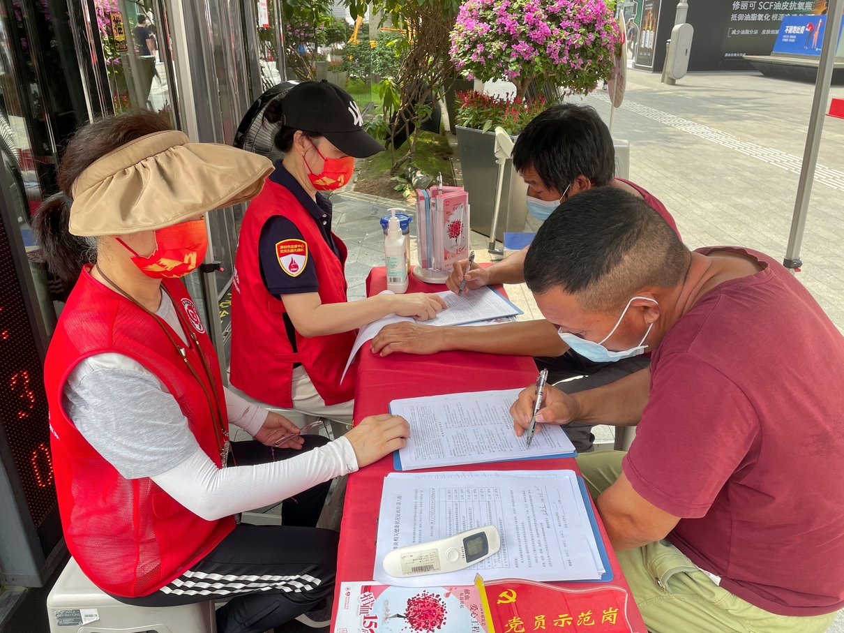 在这群人中,有一群党员志愿者,他们是深圳市血液中心的党员同事们。每到节假日,党员们轮流走上街头,在捐血站附近进行宣传招募,不论严寒酷暑,无论是春节假期、国庆假期、还是平日的周末假期,他们都会出现在这里。
