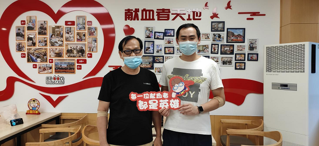2021年10日6日上午,正值国庆假期中,一对父子携手到浙江省血液中心武林院区成分血采集大厅一起参加无偿献血。他们是来自杭州萧山的陈水木、陈迪两父子。59岁的陈水木告诉工作人员,自2014年加入到无偿献血队伍,今天是他第108次献血(累积献血量达33600ml),因为知道献血的益处以及能挽救他人的生命,他一直坚持至今,基本上14天的间隔期一到就来献成分血,而且发动自己的家人一起加入到献血的队伍中来。