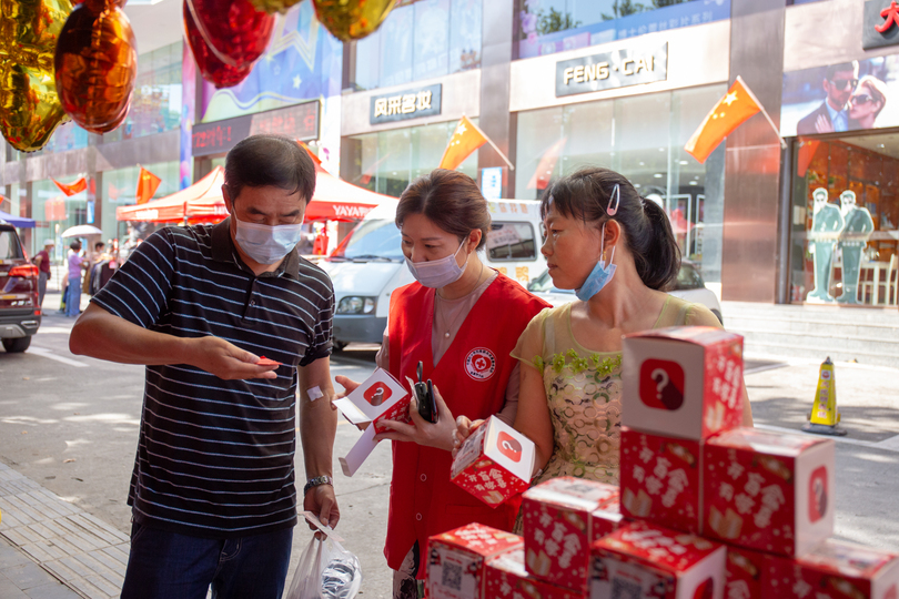 在全市的各爱心献血点,90名志愿者报名参加无偿献血志愿服务,走上街头宣传无偿献血小知识,为献血者们提供力所能及的服务,同时,他们也积极加入献血者的队伍,为爱举手。无偿献血志愿者们用实际行动传播文明新风,用真诚服务温暖人心,爱心红马甲“闪耀的红”成为节日街头一道靓丽的风景线。国庆期间,志愿者们累计服务工时达892.5小时。