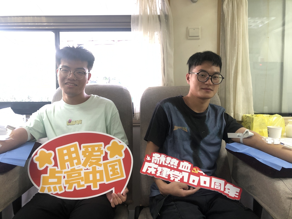 还有来自南昌医学院的两位同学熊伟,梁呈宇,他们两都是刚成年第一次参加无偿献血,刚开始都很害怕的两个人互相安慰鼓励着对方,他们觉得自己未来也是医务工作者救死扶伤是工作职责,义务献血是爱心奉献,最后每个人都献出了400毫升血液。