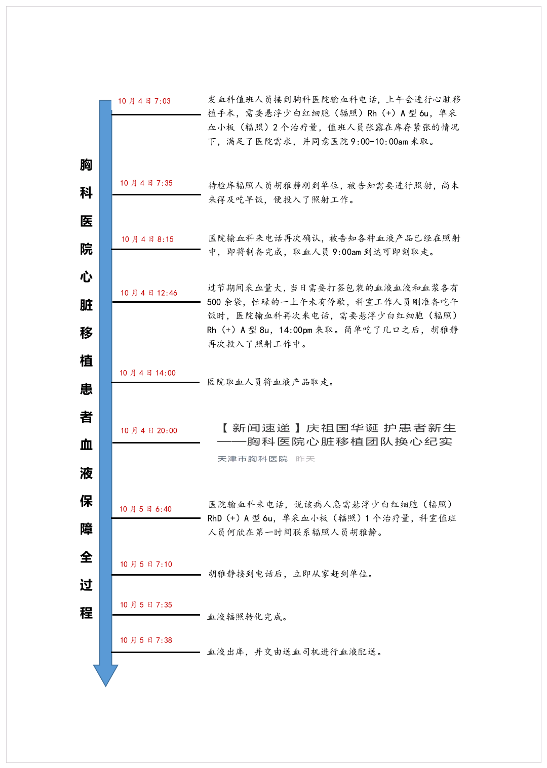10月4日,胸科医院成功的进行了一例心脏移植手术,截至5日中午12:00,患者病情平稳,发血科向临床提供的辐照产品为红细胞20u,单采血小板3个治疗量。