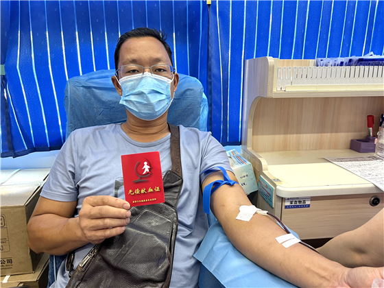 (何曙第五次参加献血)