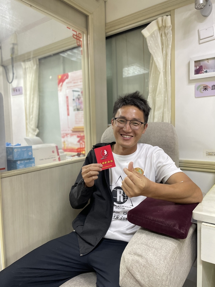 他叫帅高杰,之前都有坚持献血,这是他第十次献血了。他说:“最近工作忙,到了间隔期也没时间去献血。今天正好遇到了,工作又做了,血也献了,完美。”在他的感染下,一位同事也加入了无偿献血的队伍。第一次献血的严忠明一点也不紧张,顺利献血400毫升。
