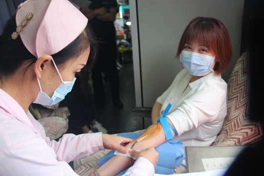 喜庆全运会召开,医者仁心献大爱。在当天献血的队伍中,有科室领导、临床医护人员、行政后勤人员;有的医生刚下手术台,有的喊来家属一起献血,不少人献完血来不及多,又继续返回到临床一线工作中。受到医护精神的感召,临近社区的居民、住院患者的家属也有不少人参加到献血队伍中,已多次无偿献血的肖萍,再次挽袖献血奉献爱心。