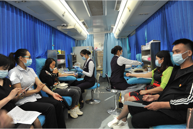 活动结束后,大家纷纷来到献血车参与无偿献血。当天成功无偿献血14人,累计献血量5600毫升。