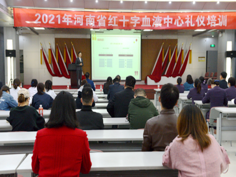 为进一步提高业务一线工作人员服务水平,为献血者和医疗机构提供优质服务,树立个人和单位良好形象,加快全面建成全国一流血液中心,2021年10月14日,河南省红十字血液中心在七楼多功能厅举办了职场服务礼仪专项培训活动。此次培训特邀郑州机场集团高级礼仪培训师刘桂霞老师进行授课,招募办、采血一科、采血二科、献血服务科、供血科等窗口及其他科室人员参加培训。