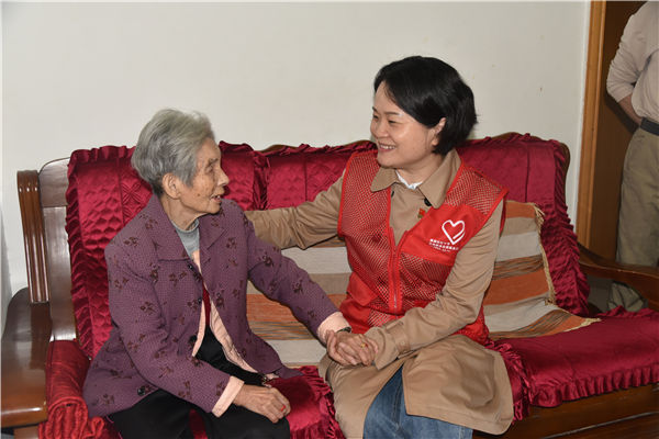 91岁的郭秀英十分感谢慰问队看望和关心,她激动地说:“今天你们能来看我,我好高兴,感谢党、感谢你们对我的关心。”
