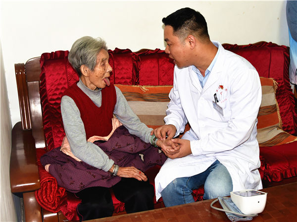 省直中医院副主任医师任剑书为易运连老人测量血压