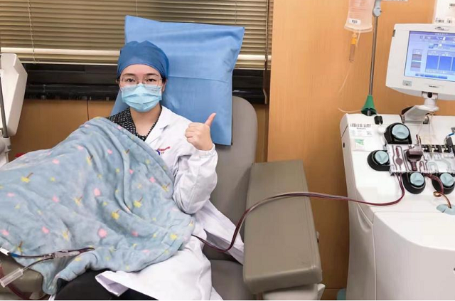 依然记得,在2021年五月,她第一次献成分血的场景。小姑娘忐忑不安地跑到同事身边问,“合格了吗?”“我一点肉肉都没敢吃唉”……现在的她坐在机器旁,已经从容不迫,游刃有余了。她告诉我们:“作为一名医务工作者、血站人员,虽不在临床一线,但是在自己的工作岗位中。尽自己所能,奉献一份心也是极好的。”