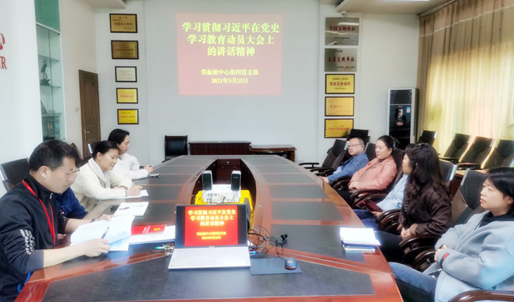 贵州省血液中心第四党支部党史学习教育自今年3月启动以来,在中心党委的正确领导下,在支部班子的引领带动下,全体支部党员共同参与,确保高标准起步、高效率开展,注重彰显自身特色,呈现出“推工作有力度”“重学习有深度”“抓宣讲有广度”“强宣传有热度”“办实事有温度”的良好局面,党史学习教育入脑入心、见行见效。