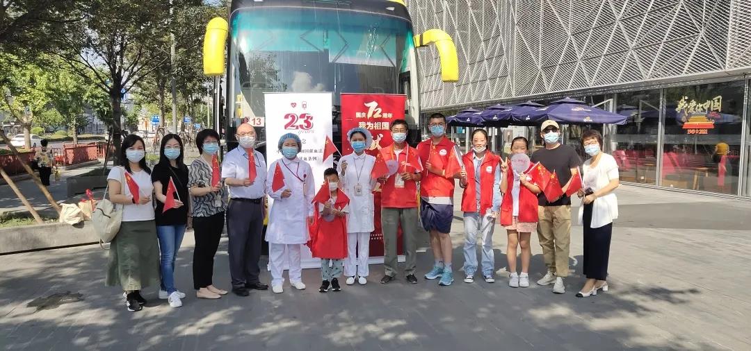 为庆祝祖国72周年华诞,《献血法》和《献血条例》颁布二十三周年,十一当日长宁区血液管理中心工作人员及部分无偿献血志愿者在虹桥艺术中心开展了“热血点燃中国红,爱心献血我先行”宣传招募活动。虹桥艺术中心点位十一国庆当日无偿献血量达11600ml,长假期间总无偿献血量达36400ml。