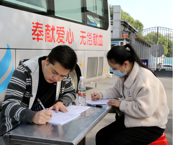 献血现场,献血志愿者在市中心血站医护人员的指导下,认真填写献血登记表、测量血压、抽血化验……医护人员也会温馨提醒他们及时补充能量和水分,整个献血活动井然有序。