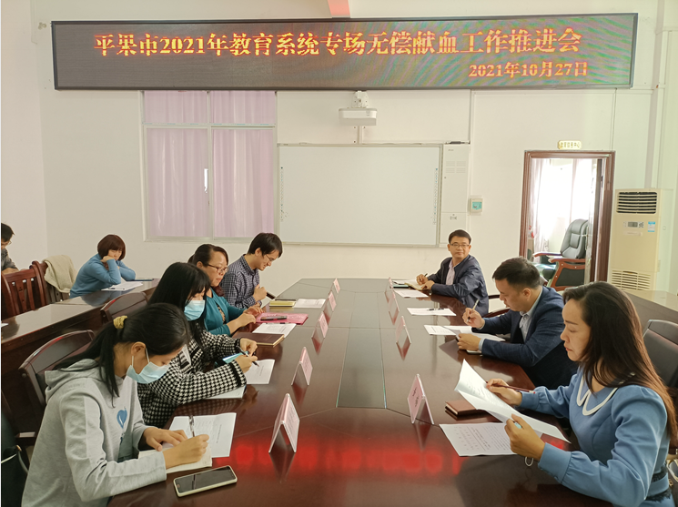 会上,黄梅副局长首先汇报了平果市2021年1-10月无偿献血的工作情况。她指出,今年以来,平果市先后开展了多个教育系统主题无偿献血活动,取得良好成效,教育系统的广大师生一直是平果市无偿献血队伍的主力军,希望各学校继续做好相关工作,组织和发动在校师生开展无偿献血互动,切实为民办实事,保障平果市临床用血需求。