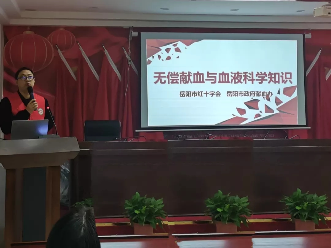 在观看了无偿献血献髓系列宣传片后,中心血站的工作人员图文并茂地介绍了无偿献血法律法规、无偿献血的好处、献血流程及注意事项等。现场互动环节中,岳阳市无偿献血宣传员刘刚辉分享自己的献血及志愿服务经验,并鼓励当代大学生积极参加无偿献血志愿服务,增强社会责任感、奉献精神和弘扬社会正能量。