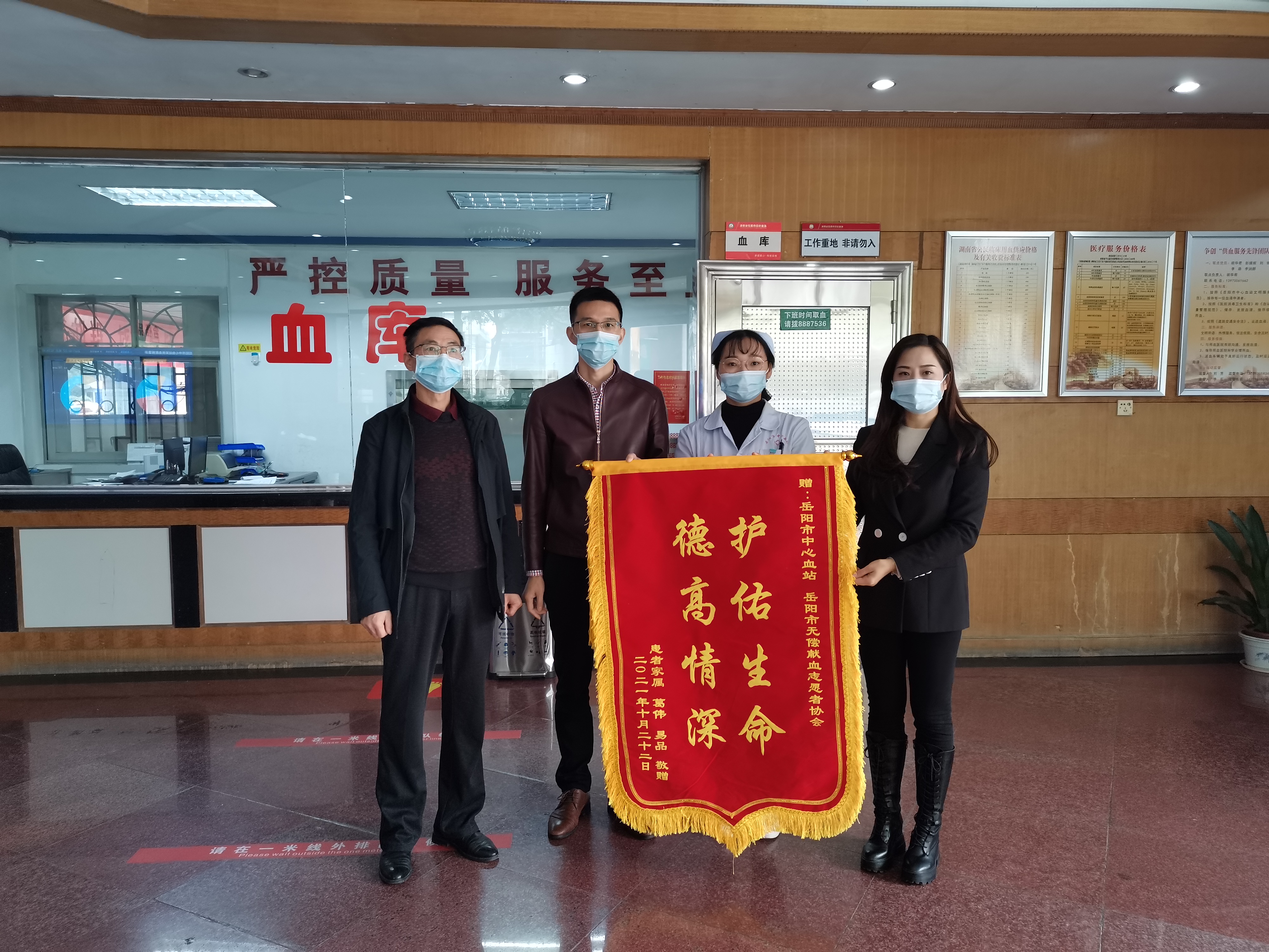 近日,岳阳市中心血站收到了一面来自患者家属赠送的锦旗。锦旗内容中“护佑生命 德高情深 ”八个字诠释了血站人竭尽全力为确保临床用血和人民健康保驾护航的初心使命。