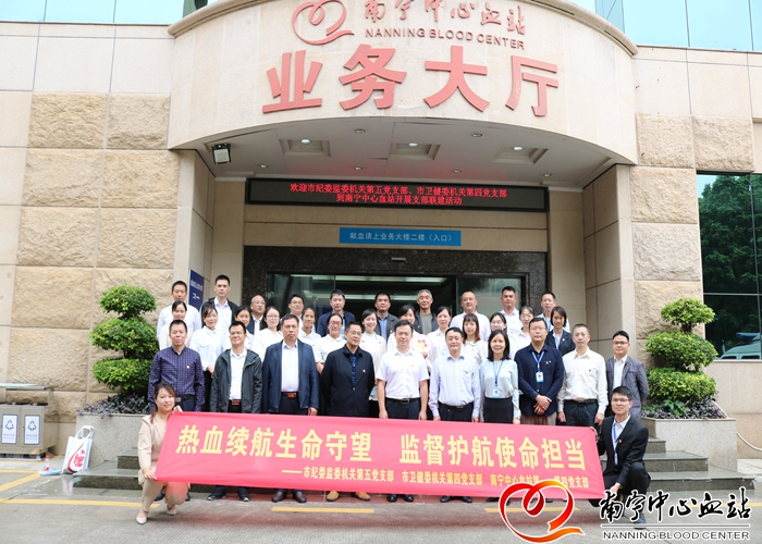 为深入学习贯彻落实习近平总书记在党史学习教育动员大会上的重要讲话精神,大力弘扬党的优良传统,助推党史学习教育走深走实,10月28日,南宁中心血站第一、第四党支部与市纪委监委机关第五党支部、市卫健委机关第四党支部联合开展“热血续航生命守望,监督护航使命担当”主题党日活动。