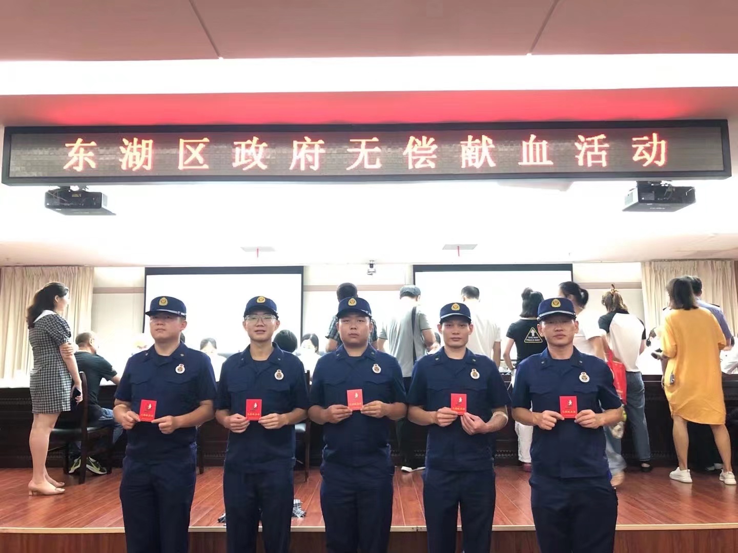 随后东湖区消防救援大队徐乐乐、郭朝志、程钱、刘力明同志也来参加无偿献血,作为消防人员的他们,在火灾发生的时候,他们总是在第一时间赶到现场,全力以赴扑灭熊熊烈火 他们用自己的力量不仅保护着祖国人民的生命财产安全,也用自己鲜红的血液为社会奉献出了一份爱心。