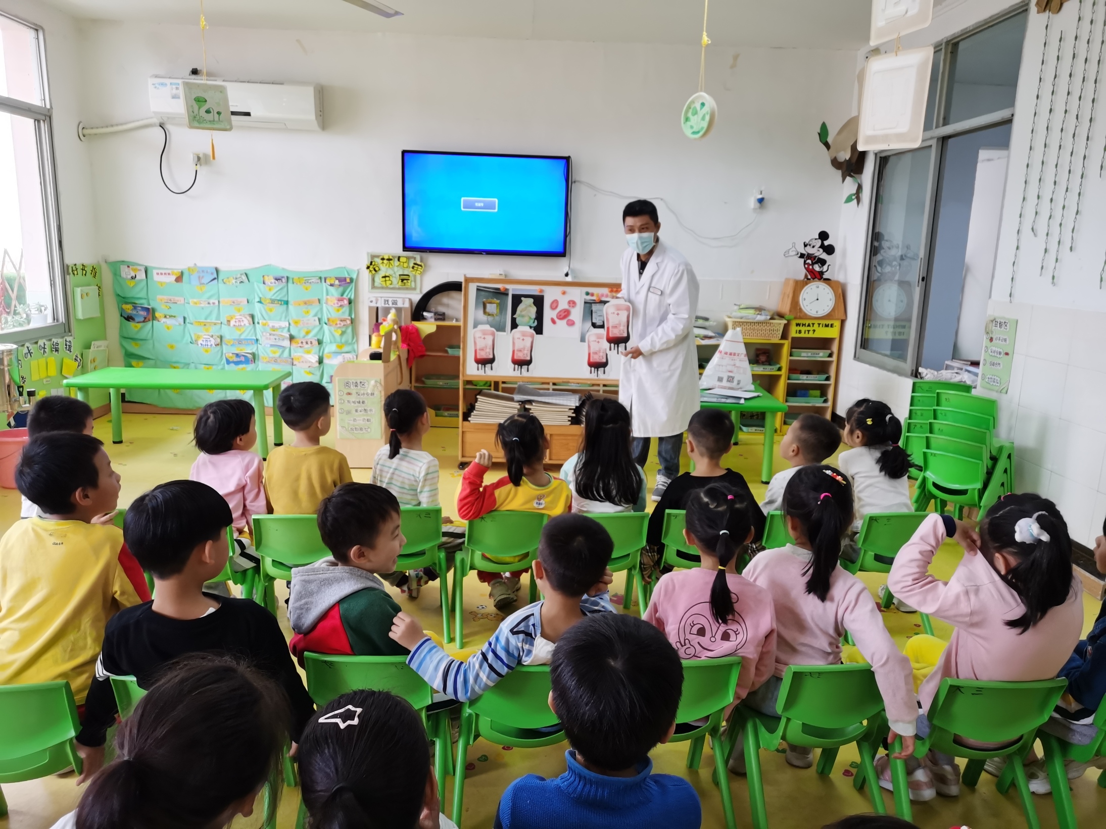 11月1日下午,江西省血液中心受邀在南昌大学幼儿园内开展了一堂生动有趣的无偿献血和血液生理知识科普教育课。为了让萌宝们能更好的学习理解血液知识,血液中心工作人员特意制作了各种血液细胞模型教具和卡通视频,让小朋友们在轻松快乐的氛围中更好的理解掌握血液科普知识。