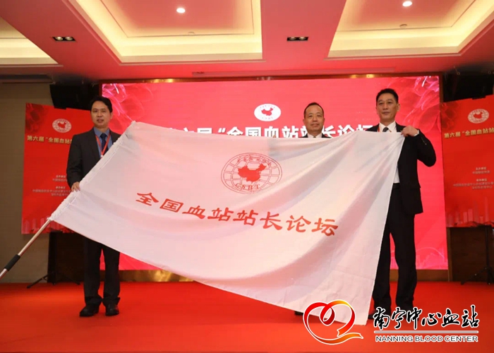 南宁中心血站梁立阳书记在第六届“全国血站站长论坛”接旗仪式现场