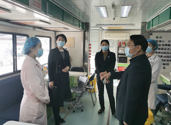 11月2日,烟台市中心血站党总支书记、站长仪明刚,副站长李洪萍及相关科室负责人来到三站采血房车进行实地调研。详细了解街头采血招募、安全生产和疫情防控等工作情况,期间与工作人员亲切交谈,仔细询问在工作中存在的困难和需求。