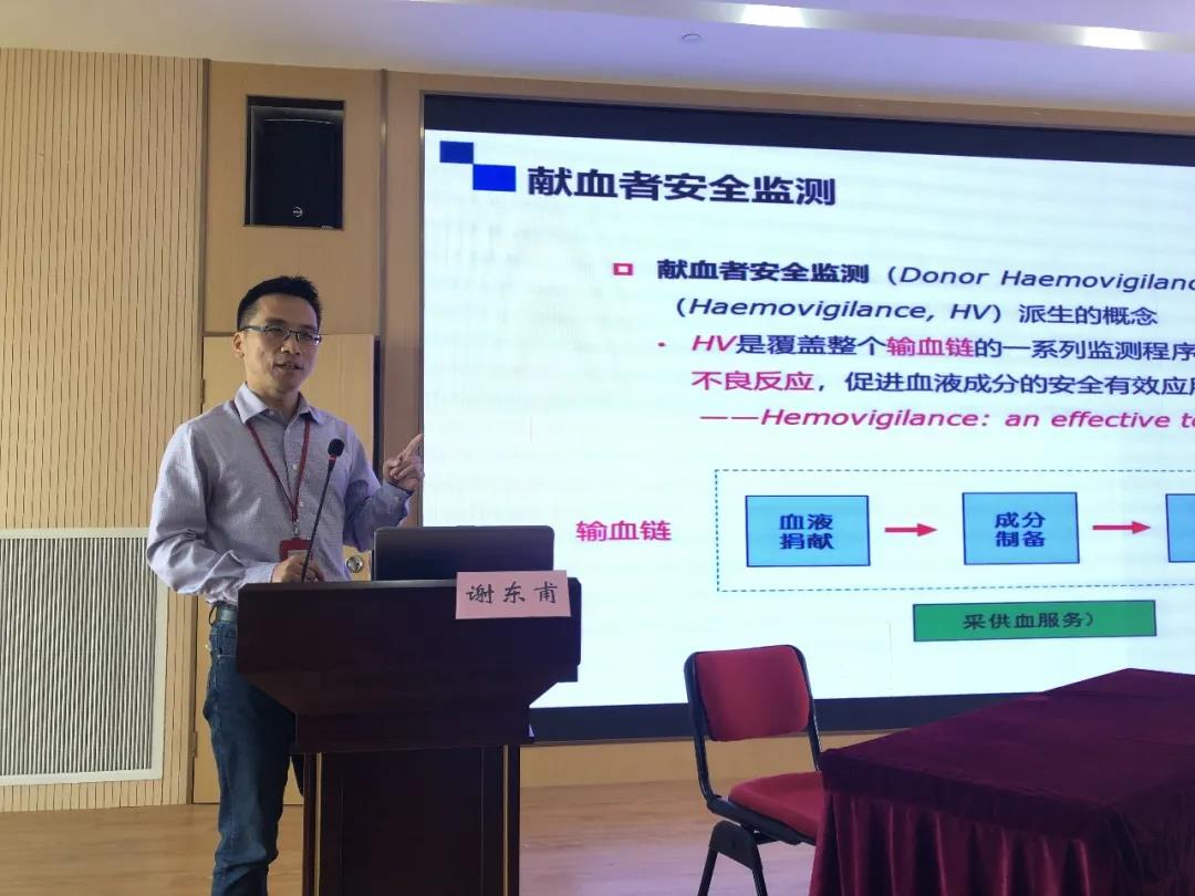 上海市血液中心社会事务科谢东甫科长讲授了《献血不良反应的监测与预防》,阐述了合理安排采集流程及环境、适时补充水分及电解质、适用性肌肉收缩动作(AMT)、充分的献血前教育和告知等措施对于预防献血不良反应的发生是非常有必要的。