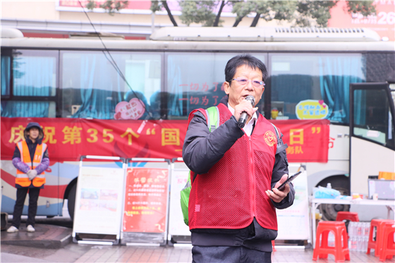 志愿者李文昌正在积极宣传无偿献血相关知识