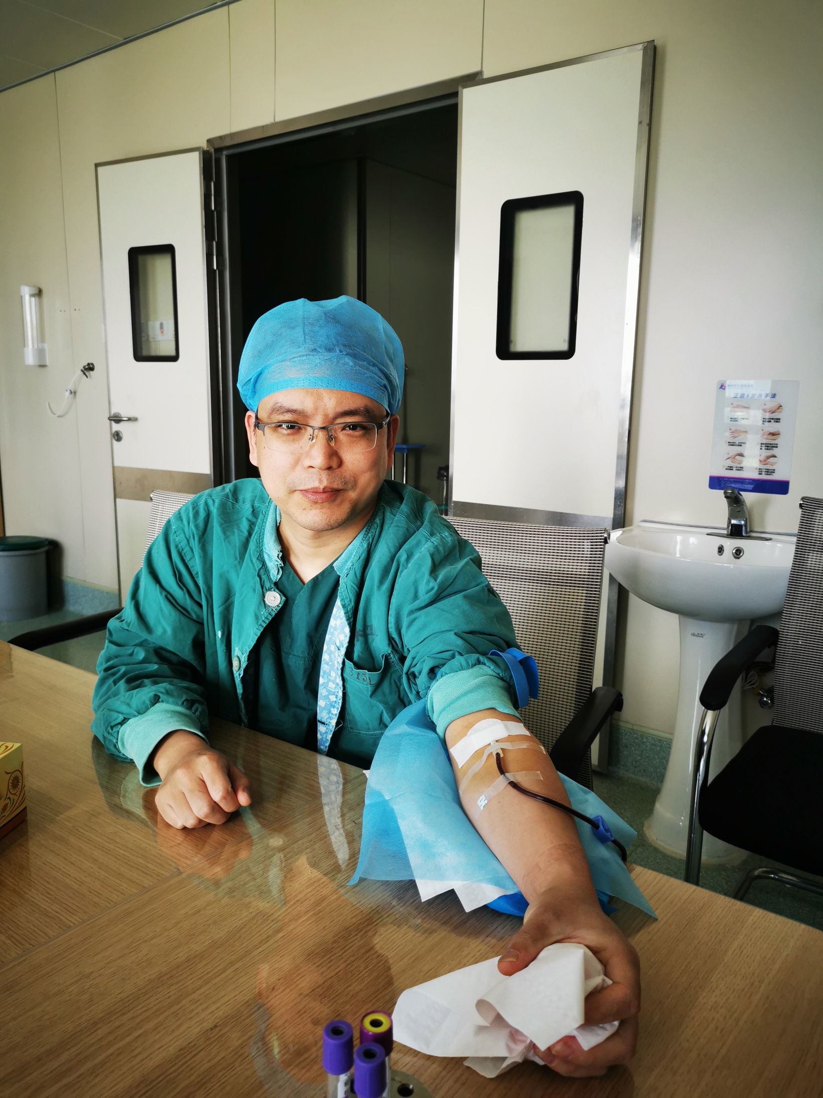 广西血液中心紧急调配人员,由两名护士、一名司机组成应急采血小组,立即奔赴柳州市妇幼保健院东院。献血者曹医生不顾昨天工作到深夜劳累的身体,为患者捐献了300毫升爱心血。他表示,从事临床麻醉工作16年,经历过数十次因抢救患者而需大量输血的危急时刻,深深体会到血液对于危重患者的抢救具有不可替代的重要作用。Rh(-)血型的群体数量有限,自己的血液能帮助危重病人,他感到很欣慰。曹医生是有名的“热血医生”,早在长沙读大学期间就第一次参加了无偿献血,得知了自己是Rh(-)血型。毕业到柳州工作后,继续积极参加无偿献血,一直坚持了18年,累计献血15次达4200毫升。他始终不忘学医的初心使命,坚持以医者的仁爱默默奉献。