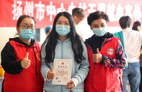 11月4日,扬州市邗江区邗上街道联合市中心血站组织人员开展无偿献血进社区活动,用实际行动奉献爱心。