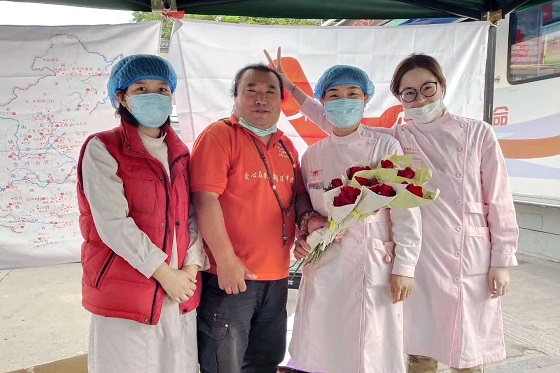 2020年新冠肺炎疫情突袭中华大地,采血四队所有员工在第—时间积极请战,郑重写下请战书,并在工作中坚守岗位、勇挑重担、认真落实疫情防控各项措施和献血者招募采集要求,实现了献血者和用血者两个“零感染”。在县区实行封闭管理期间,队长秦丽静带领队员走访乡镇,实地察访各个村镇封村情况,联系各乡镇卫生院及村委会,协调献血车停放地点,确保村民在不出村的情况下能安全奉献爱心,有效地提高了疫情期间采血量。另外,采血四队人员多次利用休息时问积极与无极县有关负责人对接协商,完成在无极县车站、小区、各入县通道的无偿献血宣传工作,为后期采血工作的顺利进行奠定了基础。