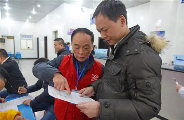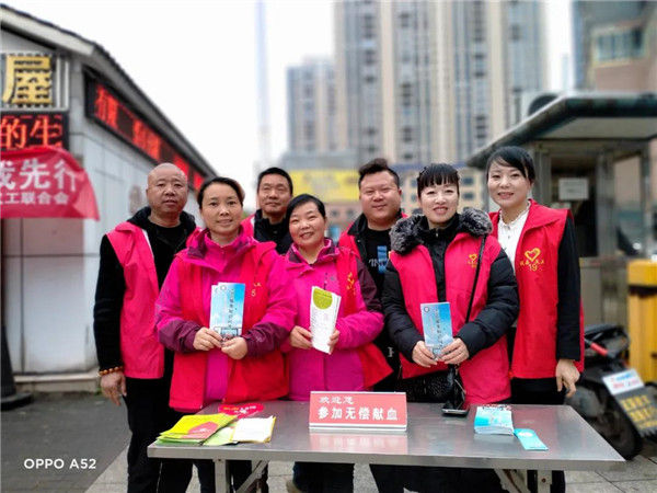 陈斌(右,男一)与攸县义工联义工一起参与无偿献血志愿服务
