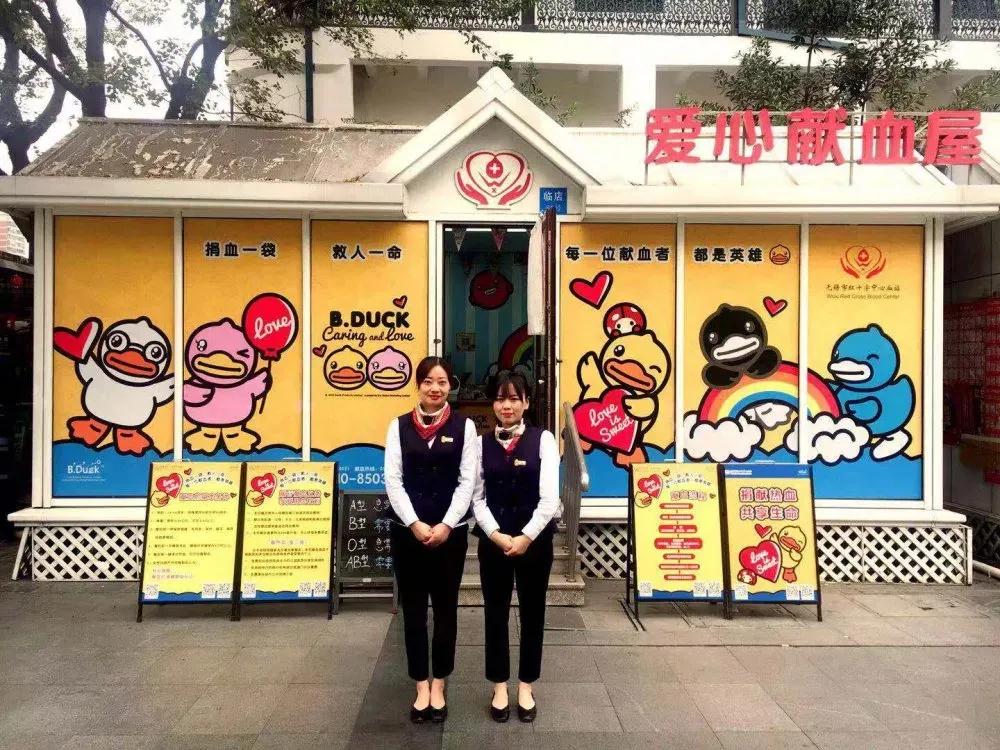 最时尚好玩的崇安寺献血屋 崇安寺献血屋以可爱的小黄鸭形象主打“时尚+好玩”为特色的网红献血屋,不仅有时尚温馨的环境,还有工作人员创新独特的网红宣传模式:小黄鸭主题献血纪念品,网红人偶举牌招募,免费夹娃娃活动,圣诞节圣诞老人送音乐贺卡、为献血者提供氛围道具自拍打卡,节日期间为献血者送上自制爱心花束、举办抽奖活动,吸引了很多年轻人加入无偿献血者队伍。