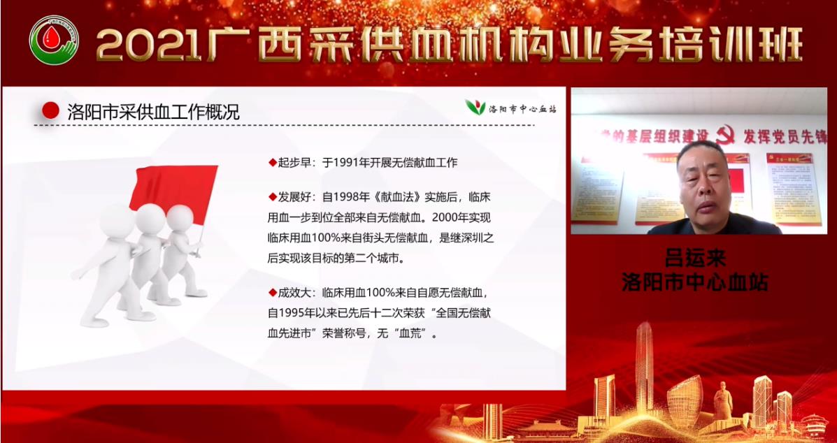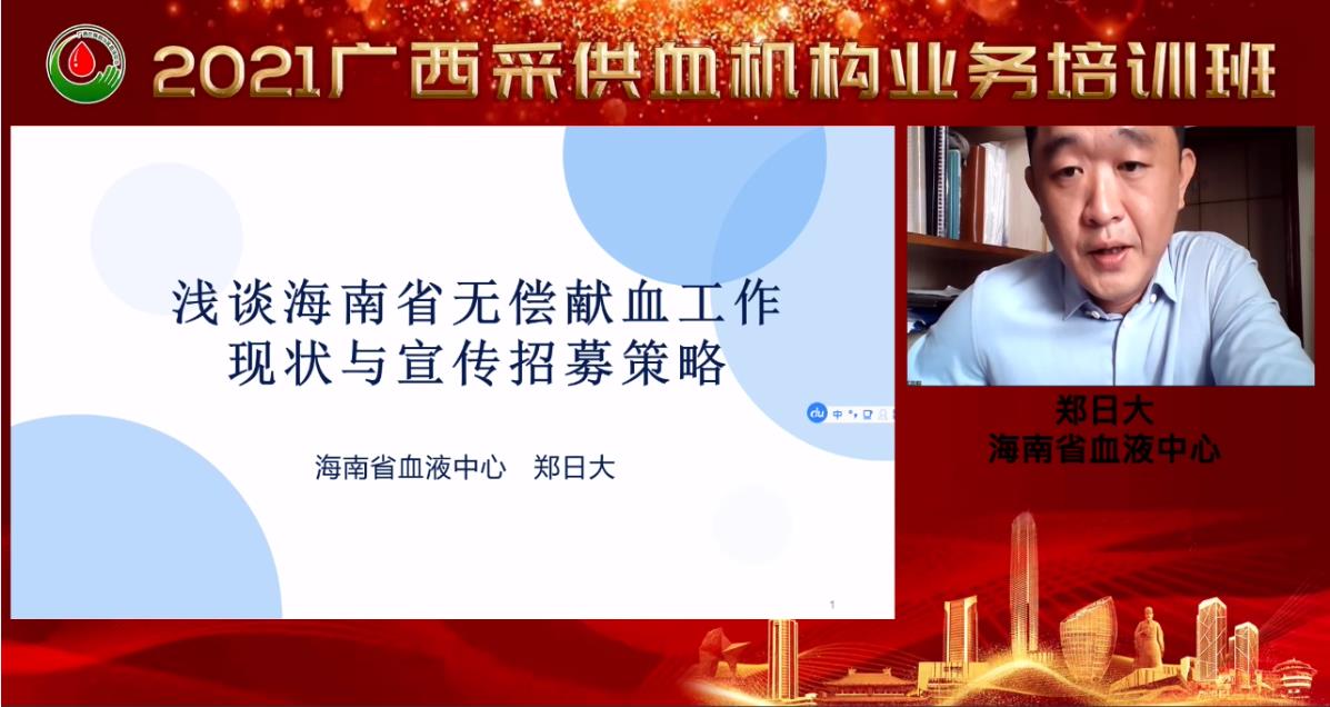 为全面提升广西壮族自治区采供血机构业务水平,促进无偿献血宣传动员、精准招募、个性化服务、献血者保留以及志愿者队伍管理等方面发展,11月11-13日,由广西血液中心主办的2021年采供血机构业务培训班在柳州市顺利召开。为了落实疫情防控的要求,培训班采用线上线下相结合的模式开展,其中线上直播观看有来自全国10个省份的学员,总访问量近6000人次。