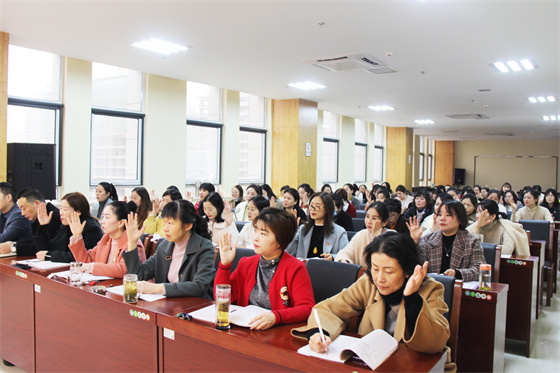在换届选举大会上,新当选的站妇联主席邓娟同志代表执委会作了表态发言。她表示,将坚持“服务大局、服务中心、服务妇女”的宗旨,带领站妇联全体执委,牢记职责,做好服务,把血站妇联建设成为有吸引力和凝聚力的组织;团结一心,持续奋进,在新征程上书写更新更美篇章;向上向善,服务社会,在传承社会文明、引领社会新风、促进社会和谐上展现“巾帼”风采。