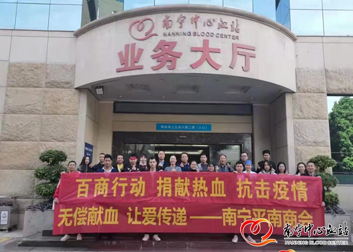 11月11日,为普及无偿献血健康知识,展示商会会员及会员企业风采,传播人道、博爱、奉献精神,南宁平南商会成员来到南宁中心血站二楼采血大厅踊跃参加无偿献血活动,以实际行动,向建党百年献礼。